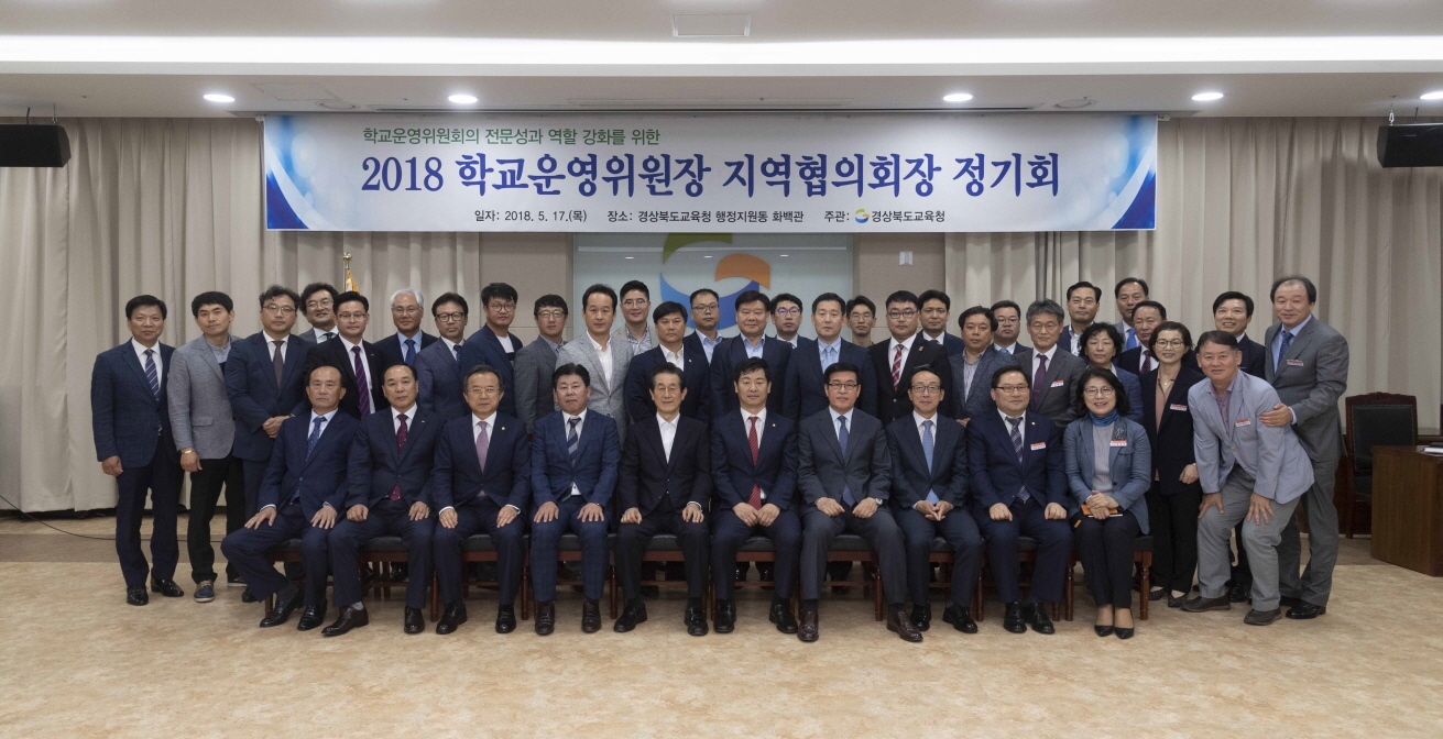 | 경상북도교육청(교육감 이영우)은 지난 5월 17일(목) 행정지원동 대회의실(화백관)에서 학교운영위원장 지역협의회장 23명이 참석한 가운데 2018년 경상북도 학교운영위원장 연합회 정기회를 개최하였다.