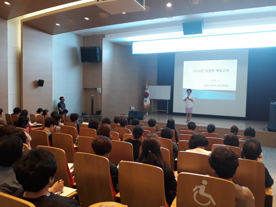| 김천시 보건소(소장 손태옥)에서는 지난 18일 녹색미래과학관 2층 강당에서 사회복지시설 위생관리 책임자 80여명을 대상으로 식중독 예방 특별교육을 실시했다고 밝혔다.