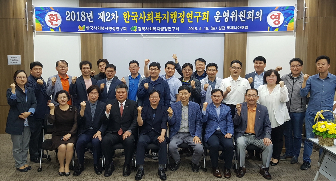| 지난 5월 19일 오후2시 김천시 로제니아호텔 세미나실에서 한국사회복지행정연구회 운영위원회가 개최되었다. 사회복지공무원으로 구성되어 전국 17개 시도를 대표하여 회장 및 사무국장 등 40여명이 참석하였다. 주요내용은 공공복지연구소와 아동수당지급 관련, 사회복지공무원의 피해사례(업무관련 민원인)와 대응 및 지원방향에 대하여 회의가 이루어졌으며, 경상북도사회복지행정연구회(회장 김천시 행복나눔과 임재춘)와 김천시사회복지사협회(회장 김종철)에서 회의장소 섭외 및 숙박예약 등을 지원하였으며, 김천시청 우종항 주민생활국장이 회의장을 찾아와 전국 시도회장단 방문을 환영하였다.