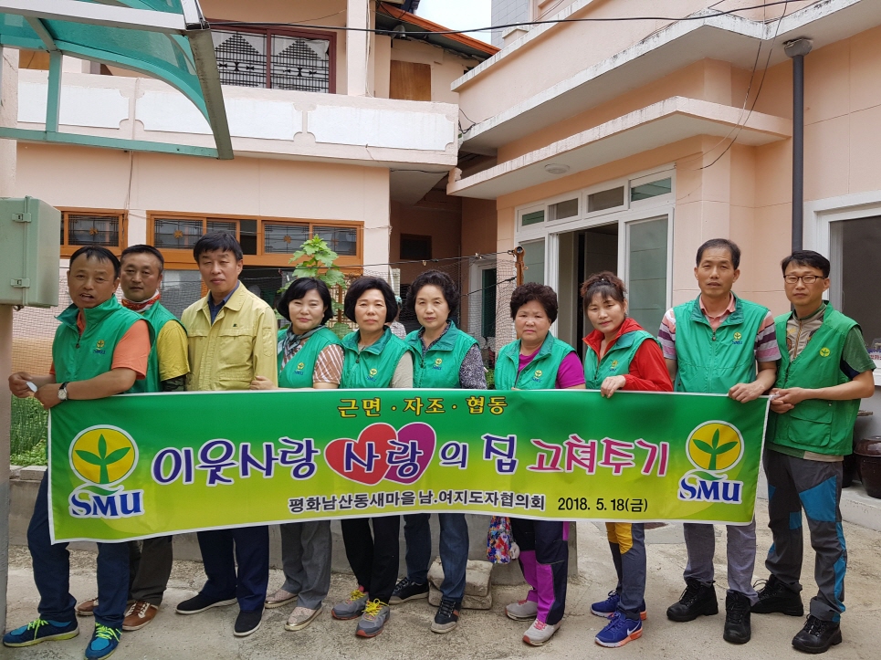 | 김천시 평화남산동 새마을 단체(협의회장 신광식, 부녀회장 김이경) 회원 20명은 2018년 5월 18일 어려운 이웃을 위한 집수리 사업 및 불법 쓰레기투기지역 환경정화 활동을 실시하였다.