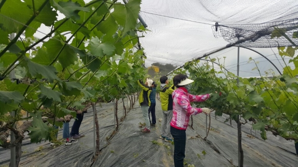 포도 농가 김씨는 “포도농사는 지금이 가장 바쁜철인데 일손부족으로 어려움이 많다. 그런데 공무원들이 하루 시간을 내어서 포도순 따기와 가지치기를 해 주셔서 농사일에 큰 도움이 되었다.”고 했다