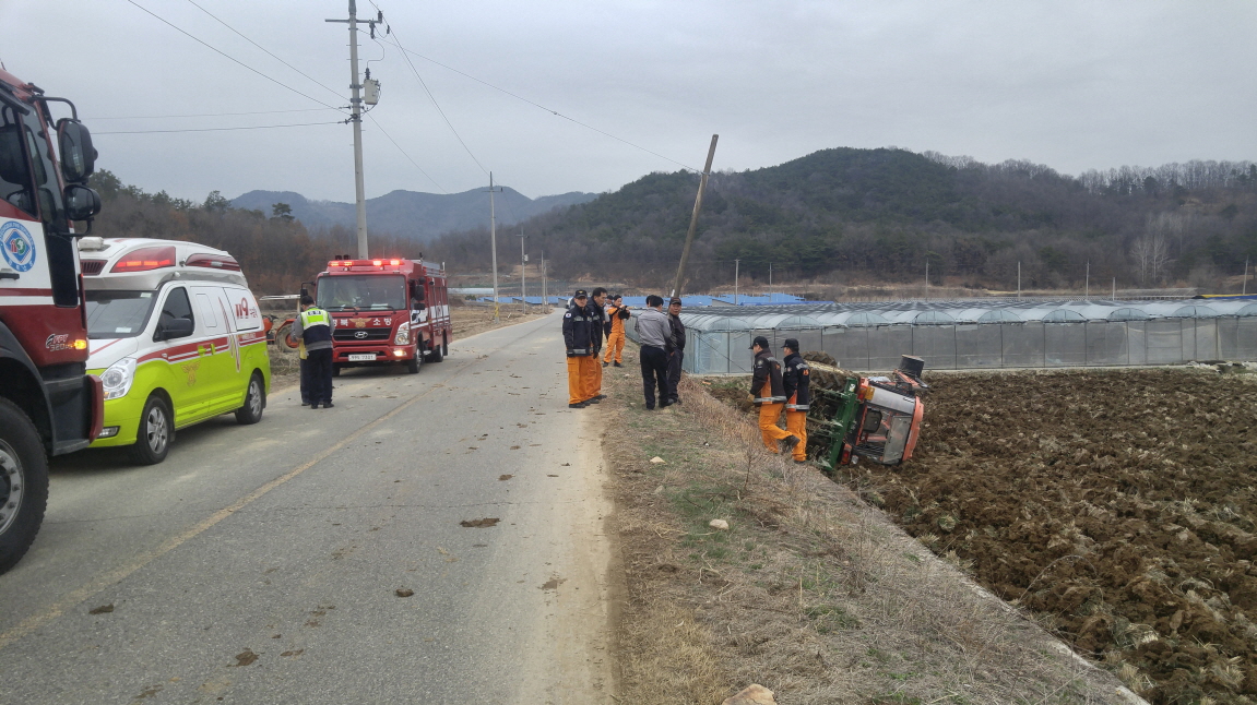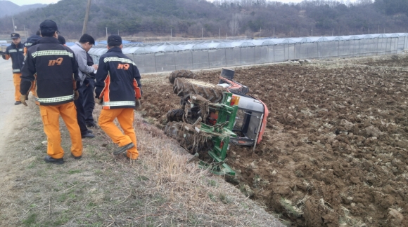 | 지난 3월18일김천시 감문면 태촌리에서 박00(남,57세)가 운행하던 트랙터가 전복되어(끼임사고) 김천소방서 119구조대에서 구조하여 병원으로 이송하였으며, 3월26일 성주군에서는 허00(남,59세)이 경운기가 전복되면서 밑에 깔려 사망하기도 했다.