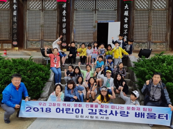| 김천시립도서관은 지난 5월 19일 관내 초등학생을 대상으로 향토에 대한 자긍심을 고취하고자 실시한「어린이 김천사랑 배움터」의 마지막 과정으로 이틀 동안 강의실에서 배운 김천의 역사, 문화, 인물, 문화재 등을 현장에서 직접 체험하고 확인하는 탐방의 시간을 가졌다.
