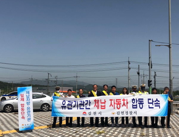 | 김천시는 전국 시군구와 합동으로 실시하는 2018년 상반기 전국 번호판영치의 날을 맞아 자동차 관련 지방세 및 세외수입 과태료 등 각종 체납액 징수 및 근절을 위하여 김천경찰서와 함께 5월 24일 체납 자동차 합동단속을 실시하였다.