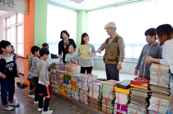 | 아포초등학교(교장 이경옥)는 5월 23일(수), 본교 27회 졸업생이라고 밝힌 최호수(76세)씨로부터 도서 700여권을 기증 받았다.