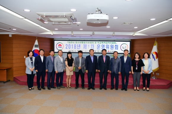 | 김천시는 5월 30일 시청 2층 회의실에서 김천경찰서, 교육기관 등 유관기관 관계자 10명이 참석한 가운데 2018년도 청소년통합지원체계(CYS-Net) 및 학교폭력대책위원회 운영위원회 회의를 개최했다. 청소년통합지원체계(CYS-Net)란 지역사회 내 청소년 관련 자원들을 연계하여 학업 중단, 가출, 인터넷 중독 등 위기청소년에 대한 상담, 보호, 교육, 자립 등 맞춤형 서비스를 제공해 가정과 사회로 복귀하는 것을 지원하는 사회안전망을 뜻한다. 이날 회의에서는 2017년 사업 실적 및 2018년 주요사업 설명에 이어 각 기관에서 추진하고 있는 주요 청소년 사업 현황을 공유하면서 위기청소년 발생 시 연계 협력 구축망을 통한 각 기관에서의 지원 방향에 대해 의견을 교환하는 시간을 가졌다.