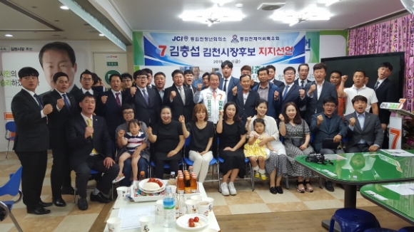 |  | | | ⓒ 김천내일신문 | | 동김천청년회의소 회장 김병환은 지난6월1일 김충섭 김천시장 후보 사무소를 방문해 제7회 전국동시지방선거에 출마한 무소속 김충섭 후보와 간담회를 갖고 지지를 선언했다. 간담회에 참석한 회원들은 김충섭 시장후보의 정책과 비전에 대해 질의응답을 하면서 미래 김천발전에 함께 노력하기로 결의하였다. 정책과 도덕성, 능력과 자질이 검증된 김충섭 후보자는 JC가 추구하고자 하는 이념과 통하고, 김천의 발전과 미래를 책임질 적임자로 우리는 김충섭 후보를 적극 지지한다.”며 참석한 회원들 모두 입을 모았고 김 후보의 김천시장 당선을 위해 최선을 다 할 것을 약속했다. 김충섭 김천시장 후보는 김천시 발전을 선도하는 청년문화활동을 확대하고 공동체의 가치를 실현해 가는 과정에 동참할 것을 약속하며 고마움을 전했다. |