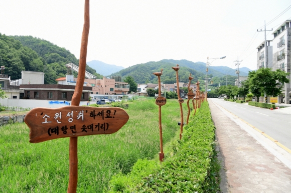 | 김천시 대항면(면장 김준호)은 주민의 화합과 발전을 위해 직지로 일대에 솟대거리를 조성하고 이를 기념하는 행사를 가졌다.