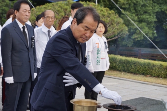 김충섭 김천시장 후보, 현충일 맞아 충혼탑 참배