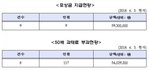 선거에서 선거범죄를 신고하면 5억원 이하의 신고포상금이 지급되며, 후보자 등으로부터 금품이나 음식물을 제공받으면 50배 이하의 과태료가 부과됩니다. 50배이하 과태료와 신고포상금은 동전의 양면과도 같다고 할 수 있습니다. 한 순간의 선택으로 과태료를 부과 받을 수도 있고 신고포상금을 받을 수도 있습니다. 선거에 관하여 후보자 등으로부터 금전·물품·음식물·서적·관광 기타 교통편의를 제공받거나, 선거에 영향을 미치게 하기 위하여 문자·음성·동영상 등을 인터넷 홈페이지의 게시판·대화방 등에 게시하거나 전자우편·문자메시지로 전송한 대가로 금품 등을 제공받으면 그 제공받은 금액 또는 음식물·물품 등의 가액의 10배 이상 50배 이하에 상당하는 과태료(최고 3천만원)가 부과됩니다. 또한, 정치인 등으로부터 주례를 제공받아도 200만원 과태료가 부과됩니다. 선거관리위원회가 이번 지방선거에서 포상금을 지급한 현황과 50배 과태료를 부과한 현황은 다음과 같습니다.