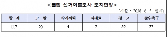 <불법 선거여론조사 조치현황> (기준 : 2018. 6. 3. 현재)