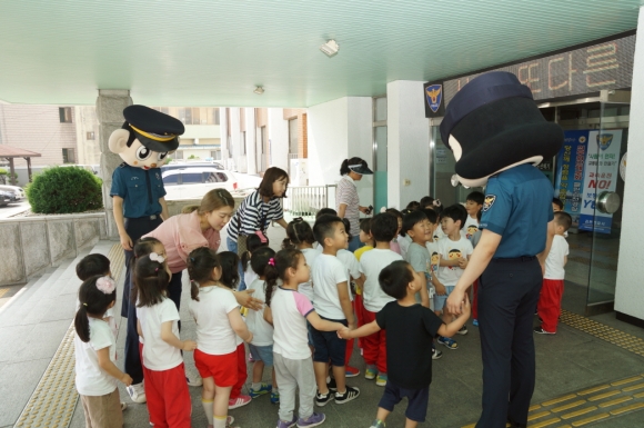 이날 경찰은 어린이들이 좋아하는 경찰 캐릭터 포돌이 포순이와 함께 교통안전 이야기를 시작으로 폴리 동영상 시청, 112종합상황실 견학, 교통순찰차 탑승체험, 어린이 경찰제복 입기 등 다양하고 흥미로운 맞춤형 프로그램 진행으로 어린이들에게 큰 호응을 받았다. |