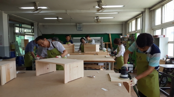 김천 관내 중학교 14교 교장 또는 교감선생님은 수업 참관 후 학교별 자유학기제 교육과정 운영 우수 사례를 소개하고 공유함으로써, 학교별 특화 발전 방안을 마련하는 기회가 되었다. 이어서 의성에 위치한 목공예체험장으로 이동하여 학교장 또는 교감선생님이 직접 공예품 만들기를 해봄으로서, 학습자가 능동적으로 참여하는 교육의 중요성을 재인식하고 교육 방법을 제고하는 연수가 진행되었다.