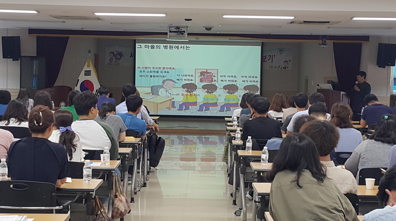 | 경상북도김천교육지원청(교육장 신정숙)은 6월 14일(목) 김천교육지원청 대회의실에서 관내 초, 중 교사 80여명을 대상으로‘학생과 교사가 행복한 수업, 교육의 중심은 학생입니다’라는 주제 아래, 두 번째 연수로 서근원 교수의‘아이 눈으로 수업 보기’를 개최하였다.