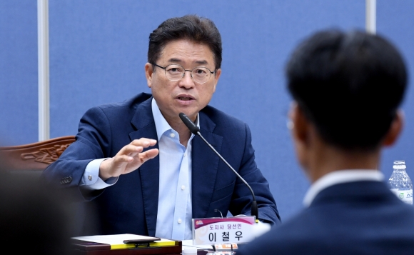 | 이철우 경북도지사 당선인(이하 당선인)은 19일 취임준비 사무실(경북개발공사)에서 경북도 윤종진 행정부지사 등 실국장급 간부공무원들이 모인 가운데 정책현안 점검회의를 통해 첫 상견례를 가졌다.