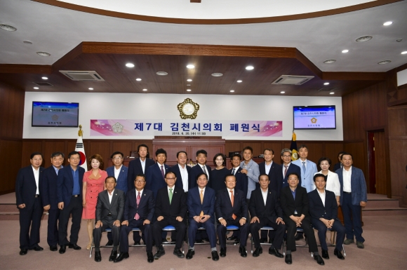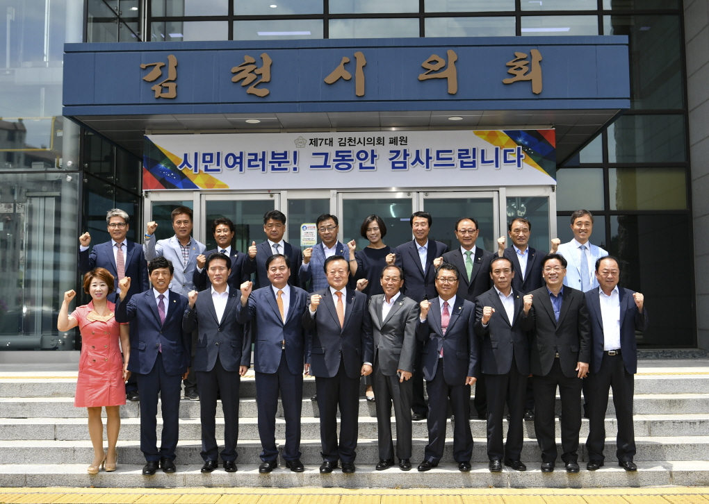 폐원식에 참석한 의원들은“지난 4년간 시민의 삶의 질 향상과 지역발전 및 시민의 복리증진을 위해 입법활동, 시정질문, 현장방문 등 내실 있는 의정활동으로 주민의 의견이 시정에 반영되도록 최선을 다했다며 보람과 아쉬움 속에 제7대 김천시의회가 공식적인 활동을 마무리하게 되어 기쁘게 생각한다”고 말했다