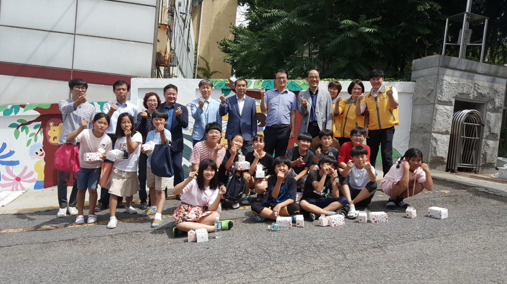 | 6월 22일(금) 김천중앙초등학교에서「초등학교 교통안전 벽화그리기」사업이 진행되었다. 벽화그리기는 김천시지역사회보장협의체와 이마트 김천점이 업무협약을 체결하여 추진하고 있는「희망나눔 프로젝트」사업의 일환이다. 벽화그리기는 교통안전 벽화를 통해 스쿨존 내 초등학생들의 교통안전사고 예방 및 학생들이 평소 알아야 할 교통안전수칙에 대한 이해를 높이고 교통사고를 예방할 목적으로 사업을 진행하게 되었으며, 이마트 김천점의 후원을 받아 김천부곡사회복지관 주관으로 김천중앙초등학교가 함께 참여하여 추진되었다,