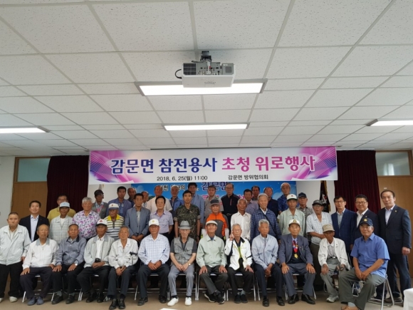 | 감문면 방위협의회(의장 이동형)는 6월 25일 오전 11시 감문면 2층회의실에서 참전용사 위로연을 개최하였다.