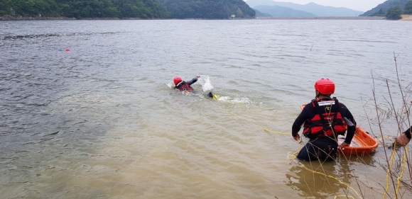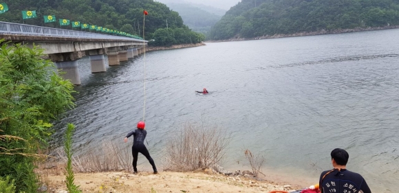 | 김천소방서(서장 이주원)는 6월 26일 오후 남면 오봉리 오봉저수지에서 급류사고 등 기상이변으로 발생하는 현장사고에 대응하기 위해 구조대원 특별구조훈련을 실시했다고 전했다.