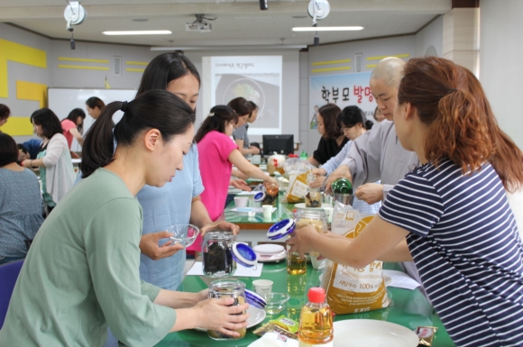 | 경상북도김천교육지원청(교육장 신정숙) 발명교육센터는 2018년 6월 26일(화)에 관내 초․중학교 학부모를 대상으로 「발명에 대한 이해와 전통음식을 통한 창의성 함양」이라는 주제로 연수를 실시하였다. 교육장은 각자의 소질을 살려 ‘행복한 미래를 준비할 수 있는 자녀교육’을 학부모님께 당부드리고, 바쁘고 힘드신 중에도 많이 참석하심에 따뜻한 격려를 전했다. 1부에서 김천발명교육센터 장영희 선생은 ‘발명교육의 필요성과 생활화에 대해 강의하였고, 2018년 김천발명교육센터 프로그램에 대한 전반적인 소개와 참여를 부탁했다. 2부에서는 ‘전통음식의 의미와 발효음식 만들기’를 조계종 대휴사 주호 스님(신동수)께서 강의하였다. 사찰음식은 한국 고유의 전통음식이 계절음식과 함께 계승된 것으로 일반채식과 달리 오신채를 사용하지 않으며 수행식, 웰빙에 행복 그리고 건강까지 생각한 웰니스 음식이다. 계절재료인 곰취를 이용한 쌈밥을 만들었고, 다시마 식초를 함께 만드는 실습을 하였다. 이번 김천발명교육센터에서는 학부모님들이 전통음식을 통한 몸을 위한 음식, 마음을 위한 음식의 의미를 배우는데 기여하였다.