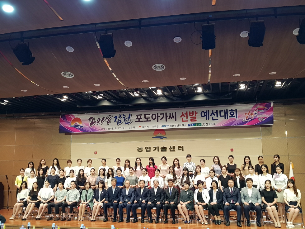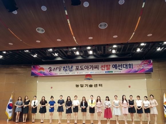 | 김천시에서는 농특산물인 포도.자두등의 우수성과 혁신도시등 발전하는 김천을 널리 알리기 위한 홍보대사를 선발하는 2018김천포도아가씨 선발대회 예심을 6월 28일 김천시농업기술센터 대강당에서 가졌다.