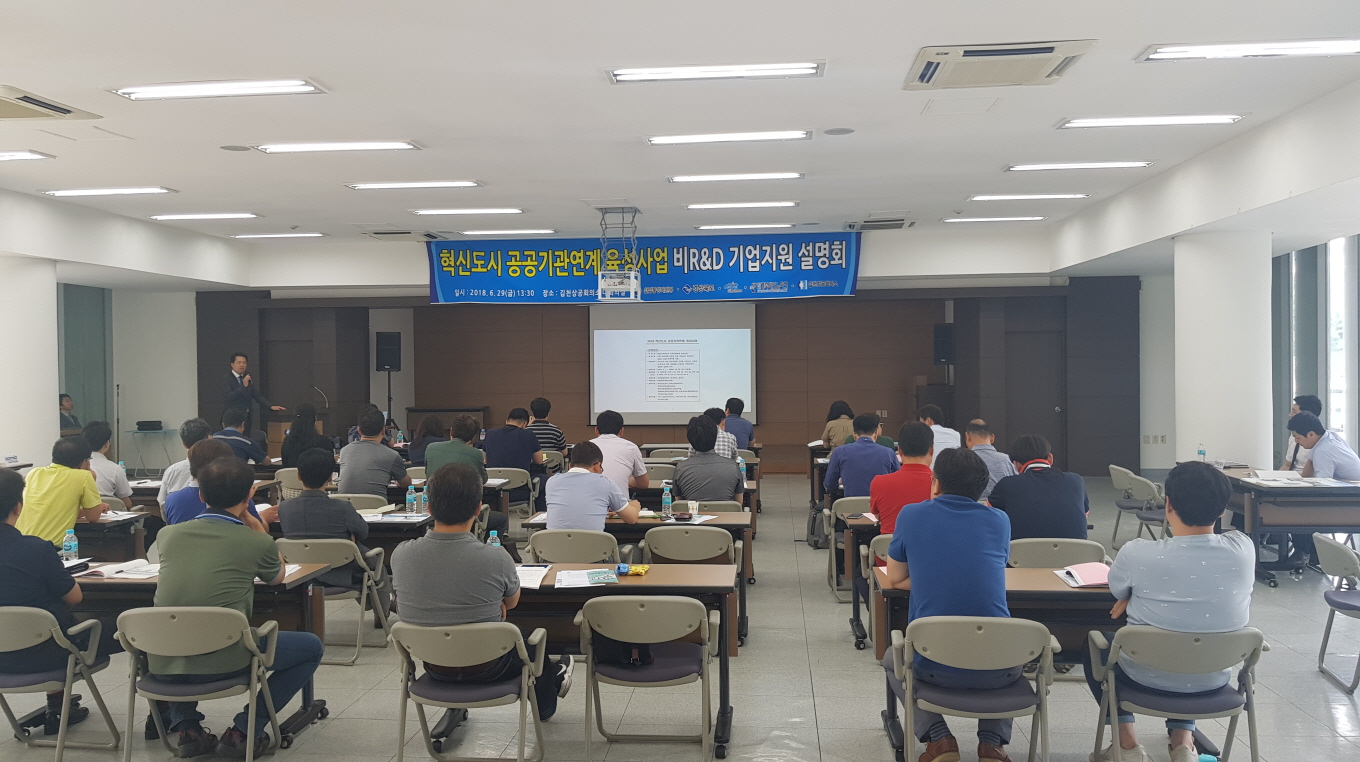 | 김천시는 지난 6월 29일 김천상공회의소 강당에서 「2018년 혁신도시 공공기관연계 육성사업」 비R&D부문 기업지원 설명회를 개최했다.