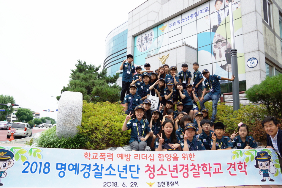| 김천경찰서(서장 김우락)는 6월 29일(금) 김천경찰서 명예경찰소년단 학생들과 함께 구미시 송정동 소재 청소년경찰학교를 방문, 경찰관련 여러 체험을 통하여 학교폭력예방 및 친구들 간 또래지킴이로서의 역량을 강화하는 시간을 가졌다.