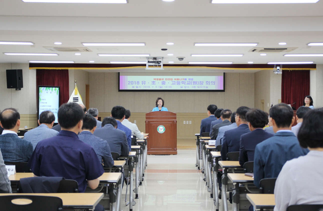 | 경상북도김천교육지원청(교육장 신정숙)은 7월 9일(월) 대회의실에서 학생들의 안전한 여름나기를 위한 유․초․중․고등학교(원)장 회의를 개최하였다.