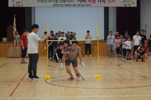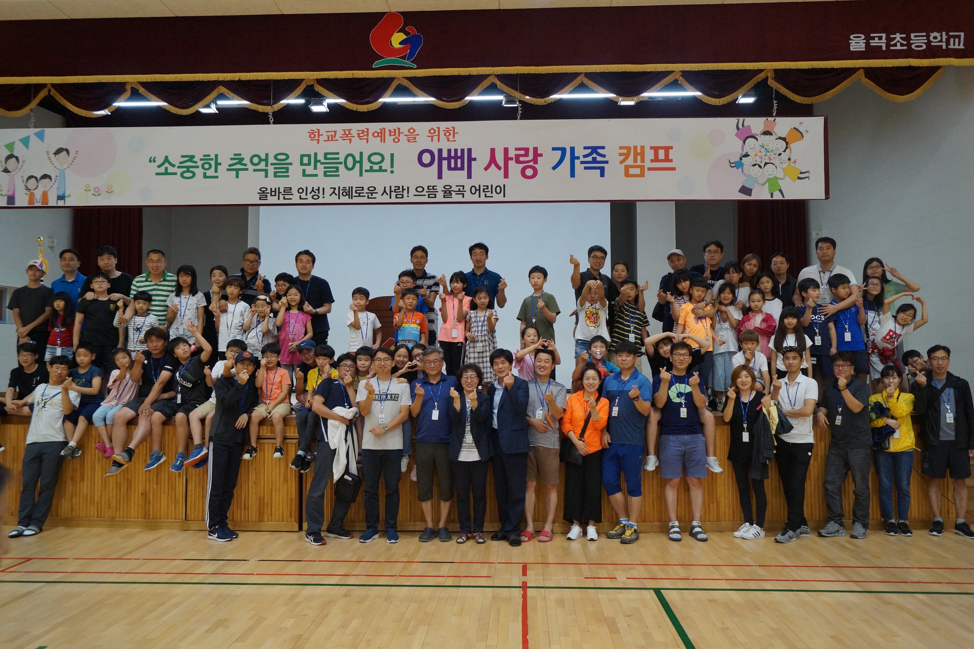 | 율곡초등학교(교장 이삼영)는 2018년 7월 6일(금)에서 7월 7일(토)까지 1박 2일 동안 “소중한 추억을 만들어요. 제5회 아빠사랑가족캠프”를 개최하였다. 6일 오후 5시부터 7일 오전 12시까지 진행된 이번 아빠캠프에는 최종 30가족 확정자 중 25가족(80여 명)이 참가하였다.