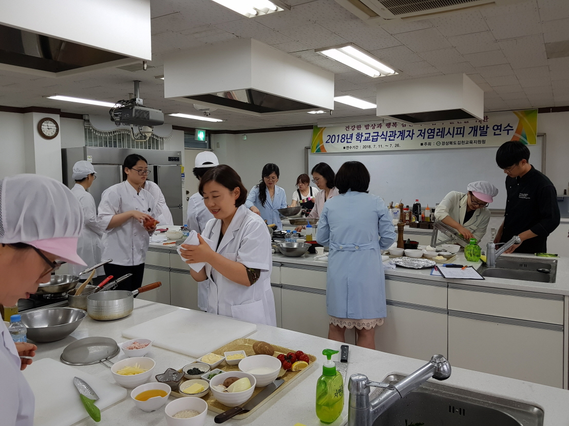 | 경상북도김천교육지원청(교육장 신정숙)은 초․중․고등학교 영양(교)사 및 조리사를 대상으로「학교급식 관계자 저염 메뉴 개발 연수」를 2018. 7. 11.(수) ~ 7. 26.(목) 기간 중 4일간 실시한다.