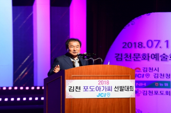 김충섭 시장은 “용기와 희망을 가지고 예선을 거쳐 본선에 진출한 16명의 참가자 모두에게 박수와 격려를 보낸다. 본 대회가 포도산업 발전에 큰 기여를 하고 또한, 오늘 선발되는 김천포도 아가씨가 김천을 대표하는 홍보대사로 지역농산물은 물론 김천의 위상을 대내외에 알리는데 큰 역할을 담당해 주리라 믿는다.”고 소감을 밝혔다. |  | | | ⓒ 김천내일신문 | |