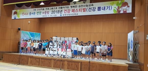 | 김천신일초등학교(교장 권명준)는 7월 13일(금) 솔누리관에서 건강(금연)을 주제로 전교생이 하나 되는 신나고 즐거운 건강 페스티벌을 실시하였다.
