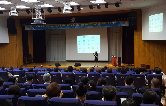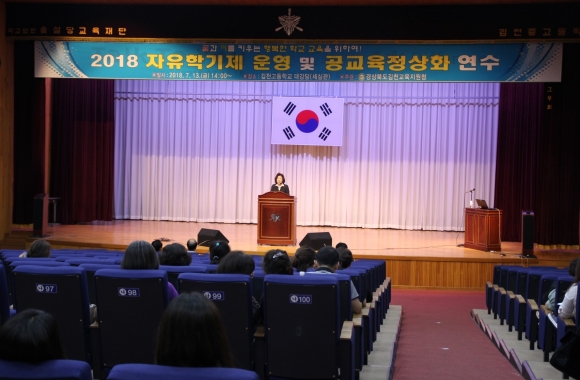 | 김천교육지원청(교육장 신정숙)은 2018년 자유학기제 운영 및 공교육정상화 연수를 김천관내 중학교 14교의 전 교원 및 희망 학부모를 대상으로 7월 13일 김천고등학교 대강당에서 실시했다.