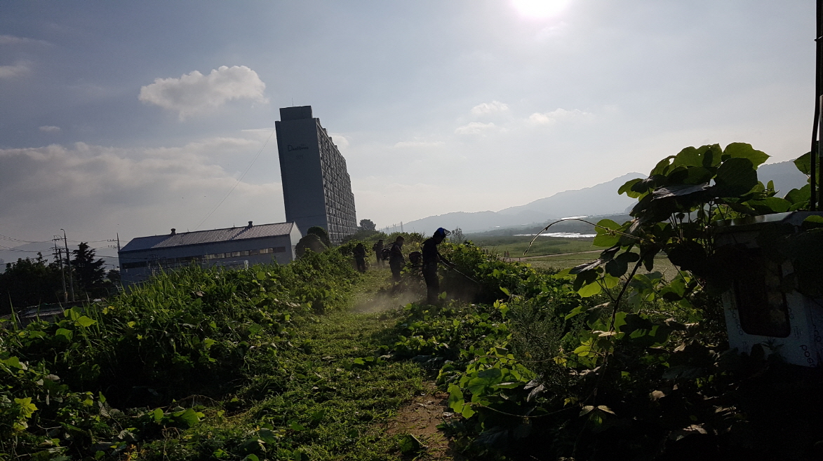 | 대신동방위협의회(회장 이병갑)는 지난 7월14일 아홉사리 도로변 풀베기 작업과 쓰레기 수거활동을 실시하였다.