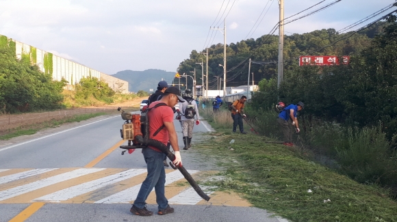 이른 아침부터 30여명의 회원들은 예초기를 이용한 도로변 잡풀 제거와 길가에 흩어져 있는 생활쓰레기를 수거하는 등, 더운 날씨에도 불구하고 구슬땀을 흘려가며 환경정비 하였다.