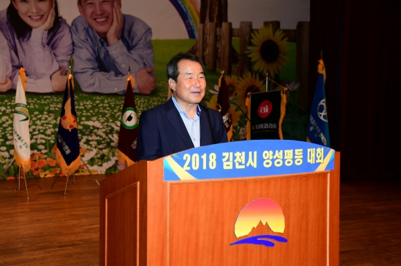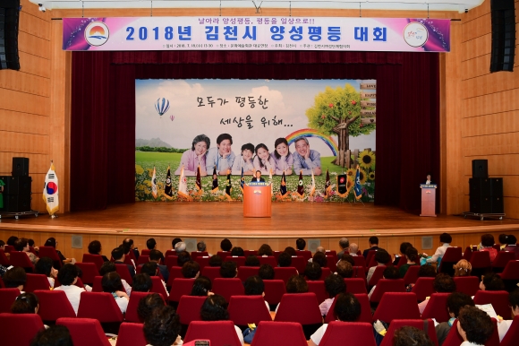 | 김천시(시장 김충섭)가 주최하고 김천시여성단체협의회에서 주관한 『2018년 김천시 양성평등대회』가 7월 18일 김천시문화예술회관 대공연장에서 성대하게 개최되었다.