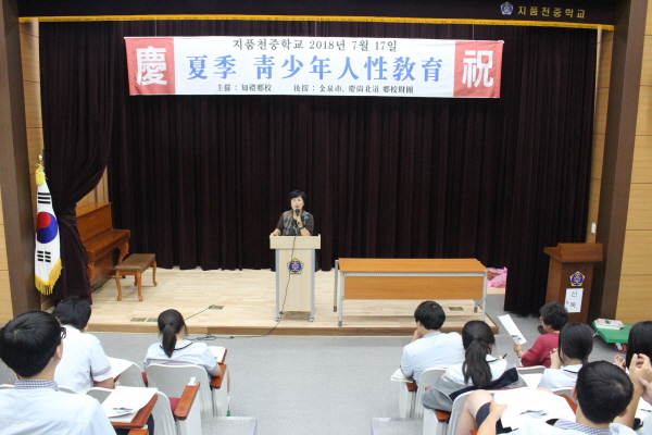 |  | | | ⓒ 김천내일신문 | | 지품천중학교는 지난 7월 17일 전교생을 대상으로 시청각 실에서 지례향교 주최“2018년 찾아가는 하계 청소년 인성교육”을 실시했다. 전통예절 및 다도예절 등이 체험위주로 진행되었으며, 강사로는 지례향교 김상규 전교, 예절지도사인 김미숙 김천시 자원봉사센타 소장을 비롯하여 도우미 선생님들께서 담당해 주었다. 교육내용은 공수 인사하는 방법에서부터 개인생활 기본예절뿐만 아니라 가정과 학교예절까지 포함하고 있는 교육으로 바른 몸가짐 등이 다양한 체험으로 진행되었다. 학생들은 전통의상인 한복을 입고 우리절인 큰절, 작은 절, 반절하는 법을 익혔으며, 다도 익히기 및 손님맞이 체험활동도 겸해서 했다. 특히 손님맞이 체험활동에서는 예의바른 모습을 보이기 위해 노력하기도 했다. 학생들은 일상생활에서 바르게 인사하는 모습과 바른 몸가짐 등을 자세하게 배울 수 있었으며, 이번 예절체험으로 몇 가지 예절을 한꺼번에 배울 수 있었는데 대해 만족감을 나타냈다. 한상후 학생회장은 찾아가는 예절교육을 통해 학교생활에서 필요한 예절을 체험을 통해 배웠으며, 친구와 협동하는 마음을 가지게 되었다고 했다. 김영일 교장은 이번 예절체험학습을 통해 학생들은 우리의 전통예절을 기반으로 바른 인성을 고루 갖춘 글로벌 인재로 성장할 것으로 기대해 본다고 했다. |  | | | ⓒ 김천내일신문 | | |