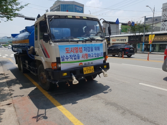 김천시 , 무더위 기승에 시가지 도로 살수 작업 시행