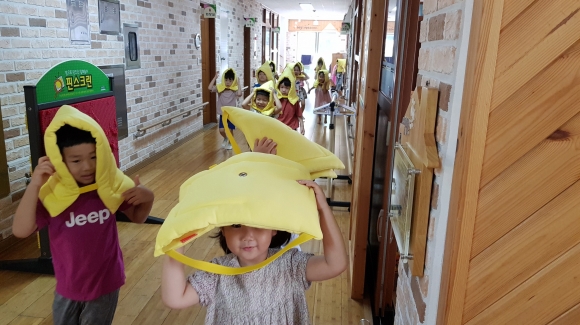 | 공립 단설 김천유치원(원장 박명희)은 7월 17일(화)에 만3세~만5세 전체 원아들을 대상으로 지진대피훈련을 실시하였다.