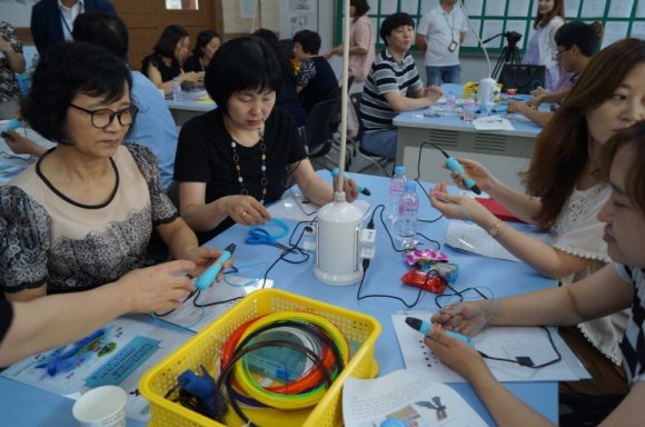 연수회에 참석하신 교사들의 열정 또한 남달라 창의적인 작품 산출에 강사님도 놀라웠다는 말씀을 하시면서 선생님들의 3D펜 및 3D프린터, 레이저커터에 관한 관심을 갖게 되는 좋은 기회였다. 시설 구축에 대한 부러움과 연수회에 대한 감사함을 함께 표현해 주셨다. 4차 산업혁명에 대비한 메이커교육에 대한 도입에 큰 출발점이 되는 시간이었다.