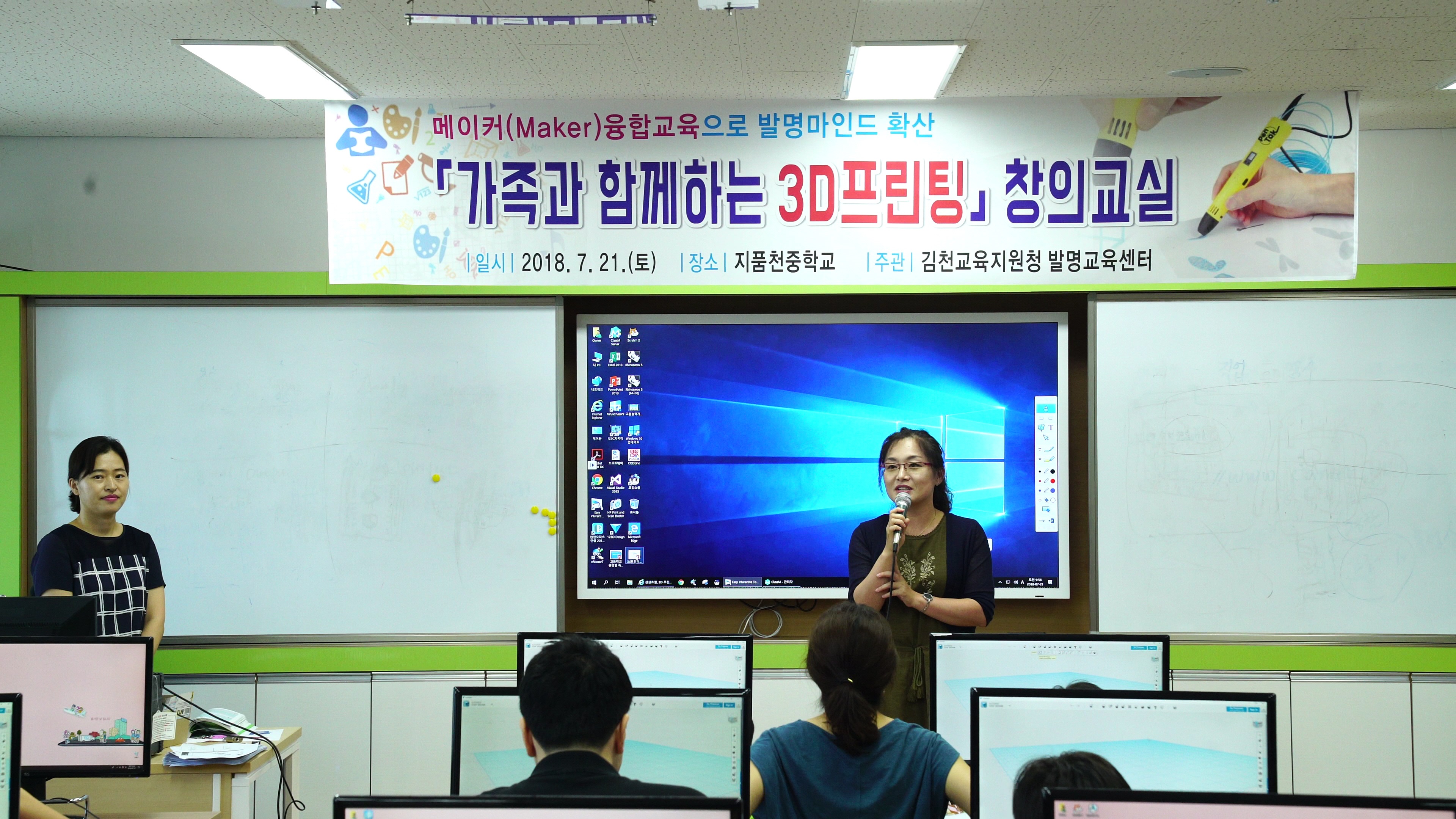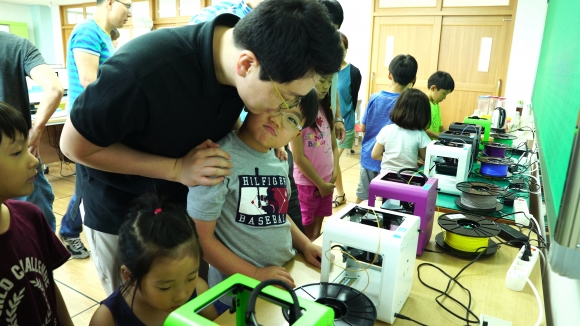 | 경상북도김천교육지원청(교육장 신정숙) 발명교육센터는 2018년 7월 21일(토)에 발명과 창의성에 관심있는 관내 초․중학교 재학 중인 자녀를 둔 가족들을 대상으로 「가족과 함께하는 3D프린팅 창의교실」이라는 주제로 교육을 실시하였다. 1교시에 김천발명교육센터 장영희 교사는 4차 산업혁명에 대비한 메이커(Maker)교육을 위해 3D프린터를 활용한 교육의 중요성에 대해 강의하였고, 대표적인 모델링 프로그램인 123D를 이용하여 모델링의 기초를 소개하고 직접 디자인하는 시간을 가졌다. 2, 3교시는 지품천중학교 최현범 교사가 창의적인 가족 작품 만들기 모델링 교육과 3D프린터를 출력하는 방법과 다양한 팁을 가르쳐 주어 작품 제작의 실제적인 도움이 되었다.