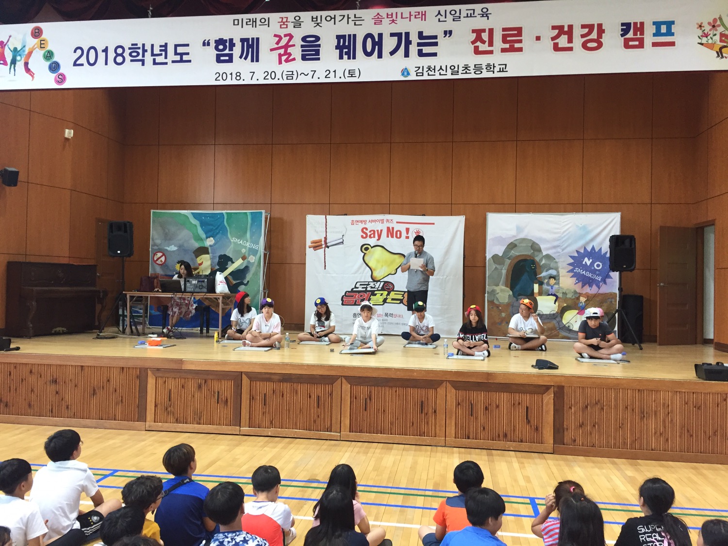 | 김천신일초등학교(교장 권명준)는 7월 20(금)~21(토) 1박 2일동안 150여명의 학생들이 본교 솔누리관에서 진로와 건강을 주제로 모여 진로 및 건강 체험 박람회, 진로 콘서트, 건강·보건 교육 등 다양한 활동을 체험하였다.