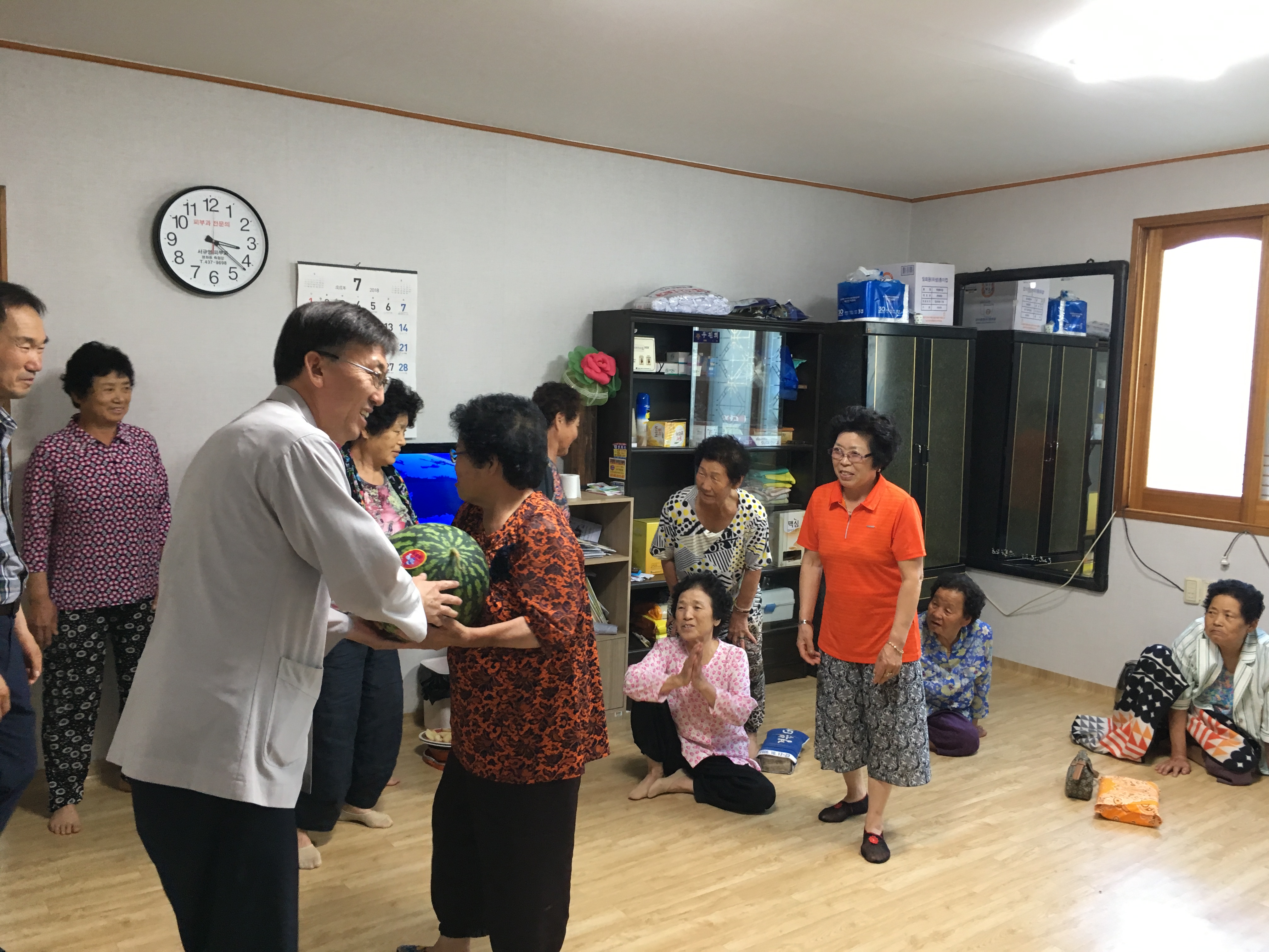 이날 행사는 경로당 어르신들을 직접 방문해 수박을 전달하고 연일 이어지는 무더위에 안부를 여쭙고, 냉방기 및 무더위 쉼터 안전을 점검하는 등 폭염에 대비한 안전관리도 함께 실시하였다.