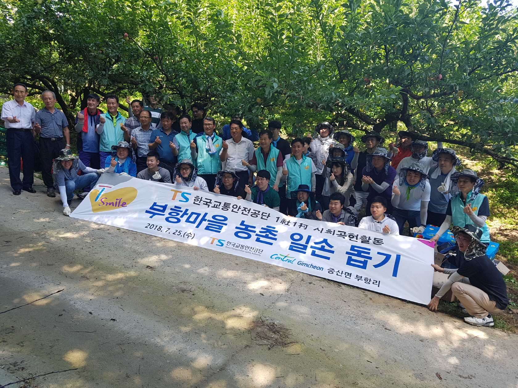 | 교통안전공단 권병윤 이사장을 비롯한 40여명의 직원들은 7월 25일(수) 오전 7시부터 1사1촌 자매결연을 한 증산면 부항리를 찾아 연일 계속되는 폭염으로 인해 일손이 부족한 농가들의 시름을 덜고자 농촌일손돕기를 실시했다.