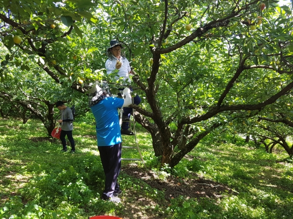 교통안전공단 직원들, 증산면에서 자두수확 농촌일손돕기