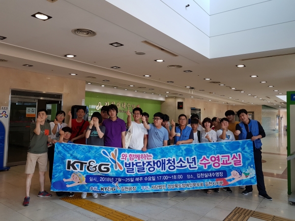 | KT&G 김천공장(공장장 신송호)은 지난 25일(수) 김천실내수영장에서 발달장애 청소년 20명을 대상으로 수영교실을 실시했다.