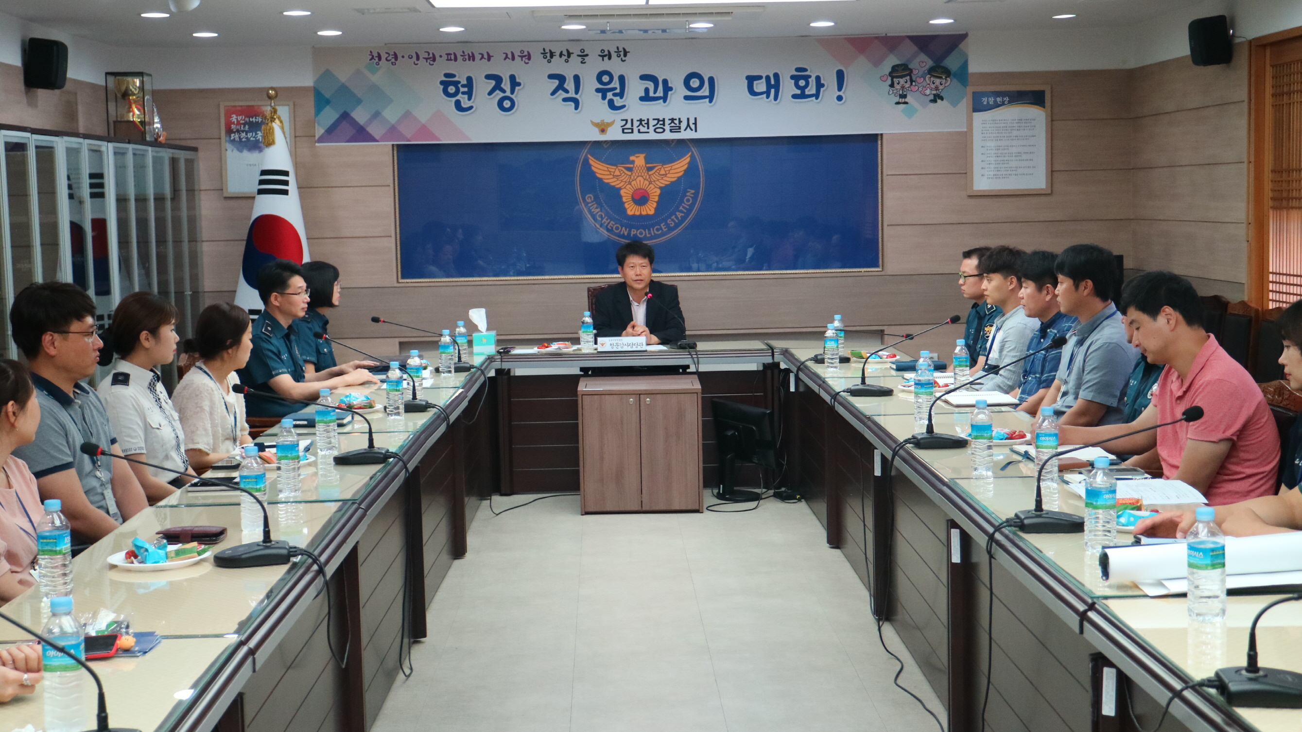| 김천경찰서(서장 김우락)에서는 8. 3.(금) 오후 2시경 청렴동아리 회원 20여명이 참석한 가운데 경북지방경찰청 청문감사담당관(총경 김영수) 주재로 청렴간담회를 개최했다.