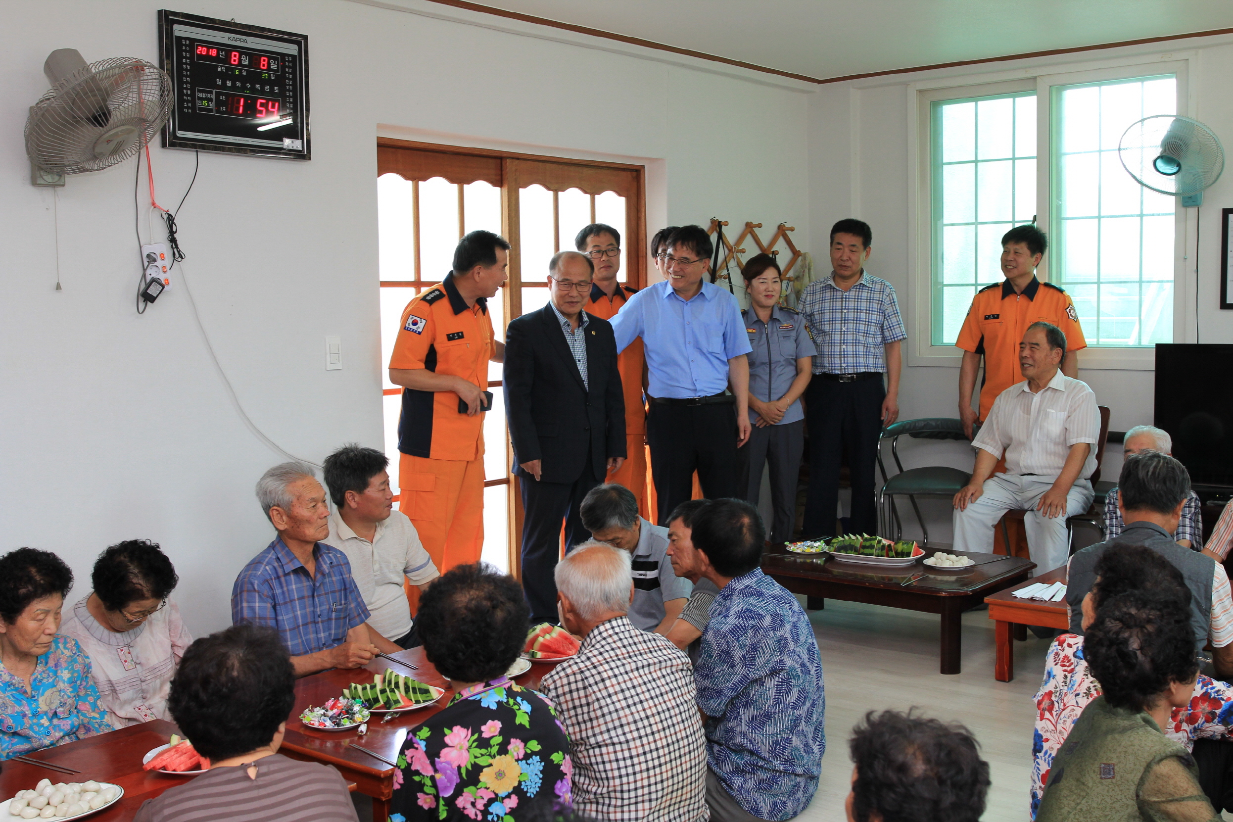 이 날 119사랑봉사단은 매목경로당을 방문하여 마을 어르신께 폭염대비 안전 행동요령과 혈압과 혈당 등 건강상태를 체크 하고 준비한 간식과 과일을 대접하면서 안심 돌봄 서비스를 실시했다.
