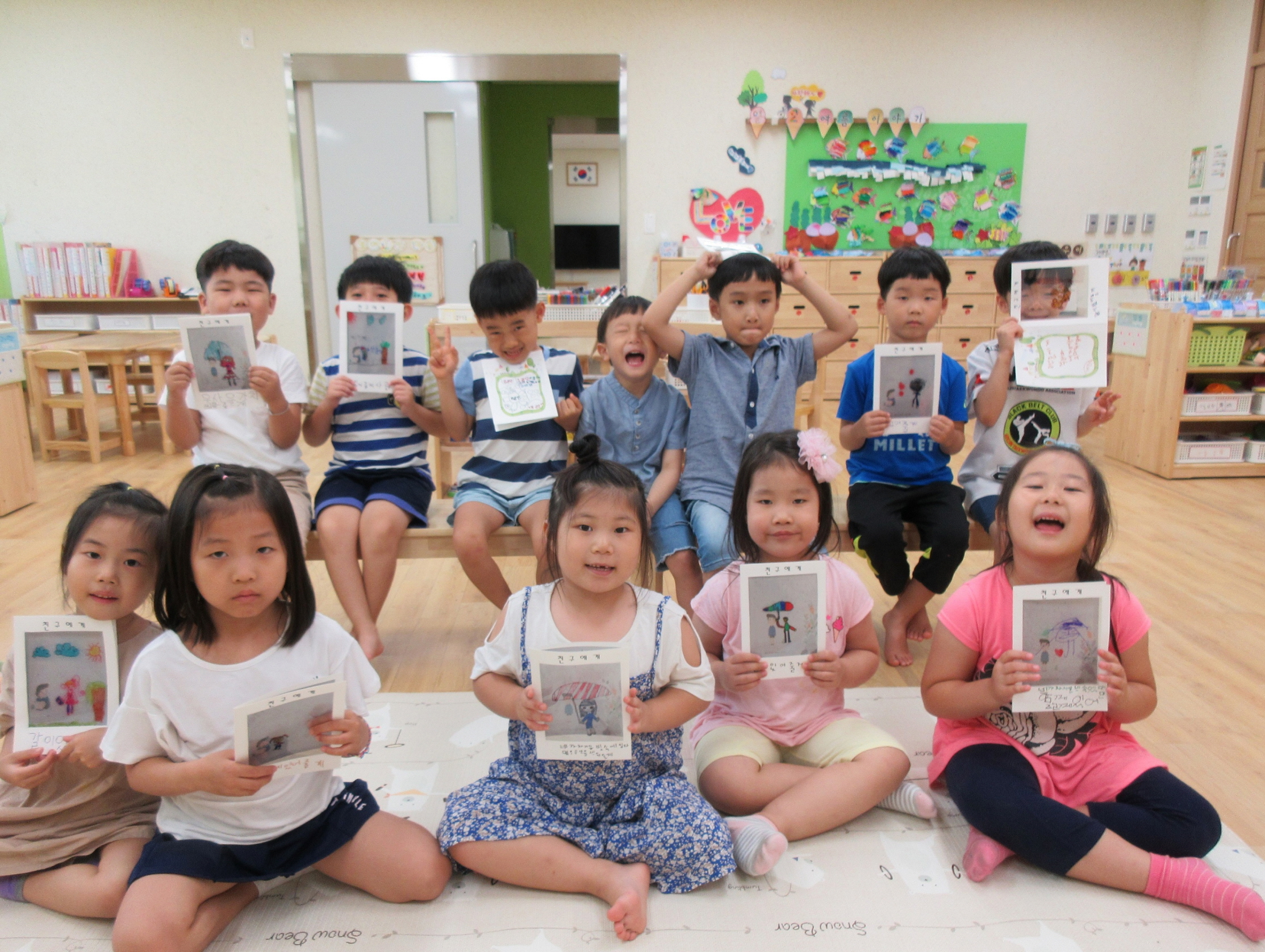 여름방학 계절유치원에서 열매반은 동화책을 읽고, 책을 만드는 활동 중심으로 유아들이 책에 관심을 가지고 흥미를 가질 수 있도록 하였다. 또한, 꽃잎반과 새싹반은 강당에서 공과 훌라후프를 사용하여 무더운 여름을 건강하게 지낼 수 있도록 신체활동을 많이 하고 있다.
