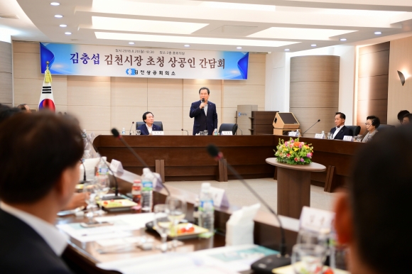 | 김천상공회의소(회장 김정호)는 지난 8월 20일 오후 6시 30분 본 회의소 2층 중회의실에서 「김충섭 시장 초청 상공인 간담회」를 개최했다.